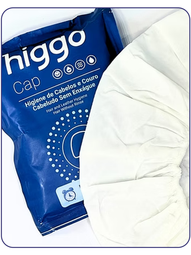 Indicado para higienização dos cabelos e couro cabeludo de pessoas acamadas, a touca Higgo Cap vem impregnada com shampoo e condicionador suave que limpa e hidrata os cabelos sem precisar lavar.